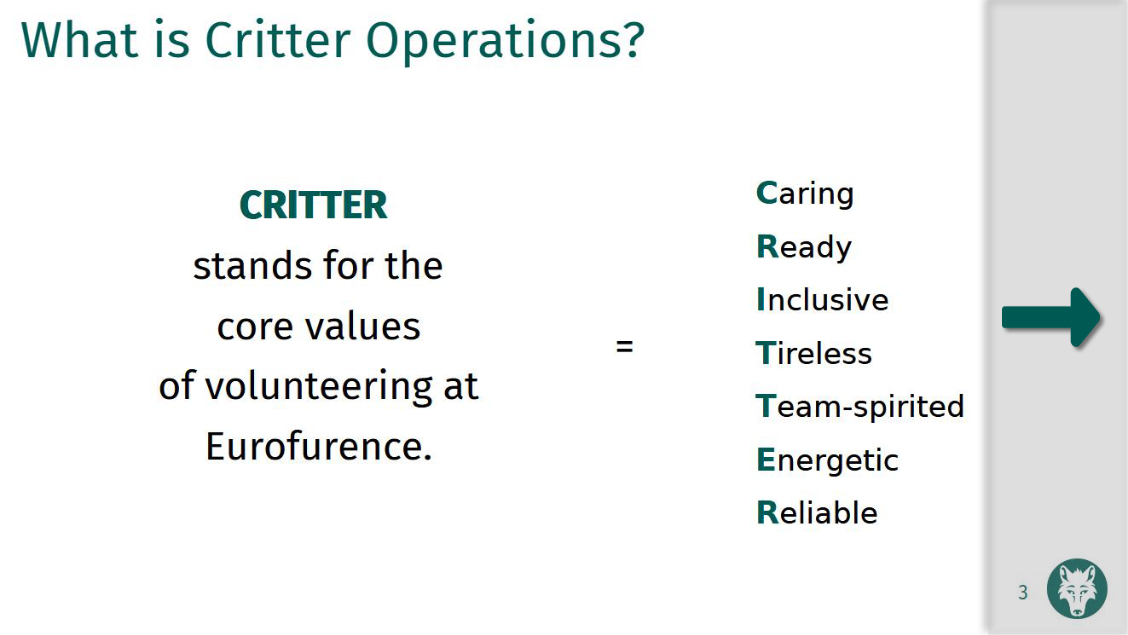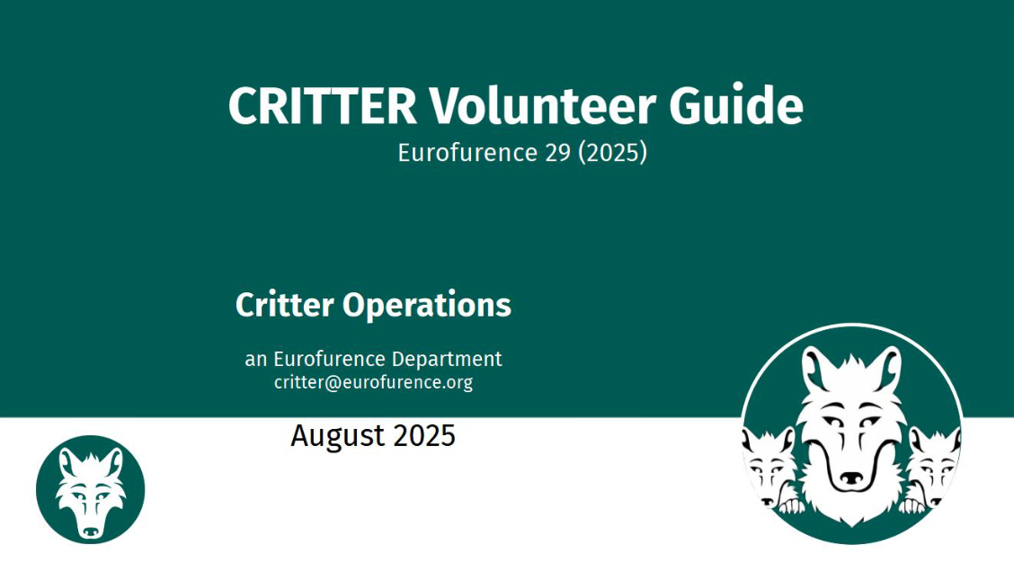 Once registered, make sure to go to the Eurofurence Info Desk and get your Critter Ribbon so you can start helping.